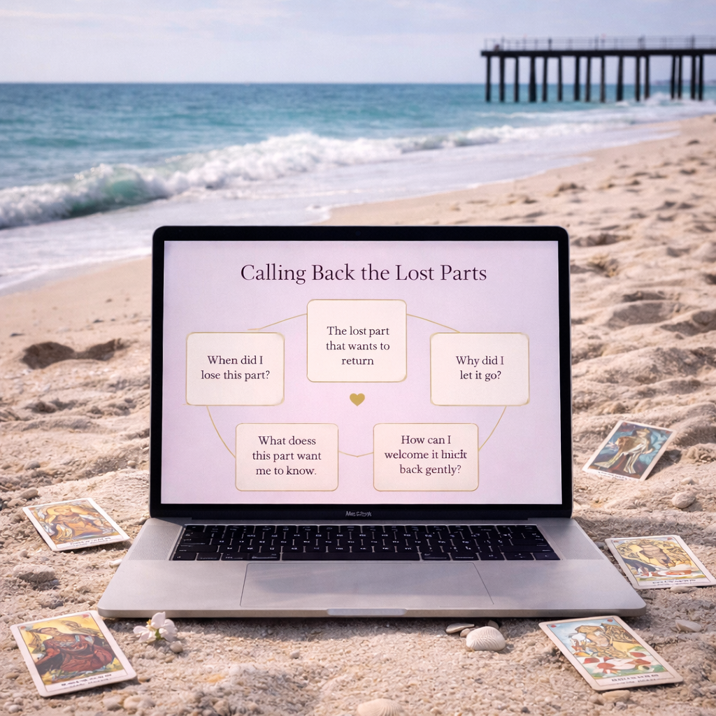 Een diepe, zachte gids die je helpt jezelf terug te kiezen — met tarot als spiegel, richting en heling.